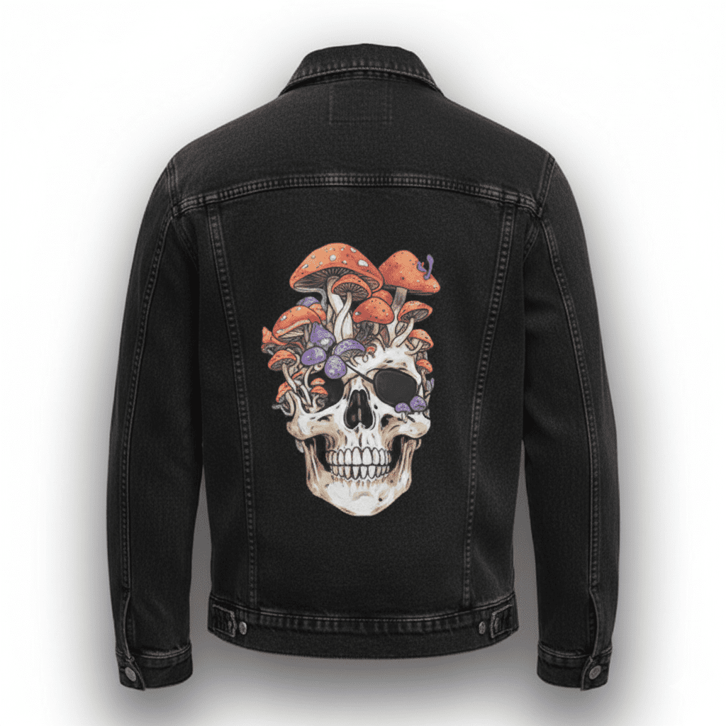 Introducing the Fungal Fade Denim Jacket, crafted for individuals who embrace bold fashion and creative identity. Made from premium-quality denim, this jacket features a striking skull artwork on the back blended with mushroom and fungal elements, giving it an edgy, street-style aesthetic. Designed for everyday wear, it delivers the perfect balance of durability, comfort, and statement design.
